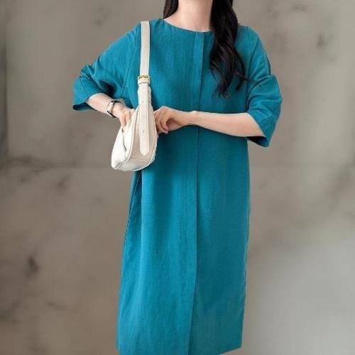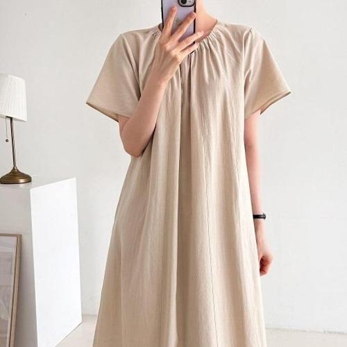 [다잇템][다잇템] 여자 휴양지룩 박스핏 SS 잔주름 라운드 마원단 롱원피스_17937028_588872