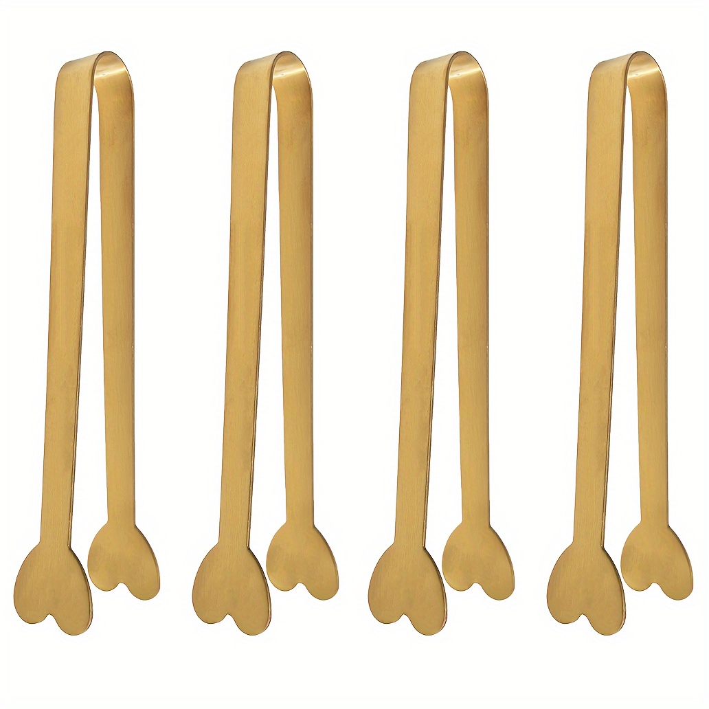 TEMU 4/6PCS 고급스러운 황금 미니 집게, 하트 모양 설탕큐브 집게, 스테인레스 스틸 작은 서빙 집게, 내구성이 뛰어난 얼음큐브 집게, 귀여운 티 파티 서빙 집게, 좋은 선물, 커피 바/웨딩/ 데이/새해/어버이날/생일에 완벽함