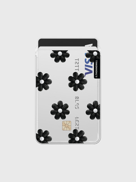 [더나인몰] black marguerite flower pattern [맥세이프 투명 카드지갑]