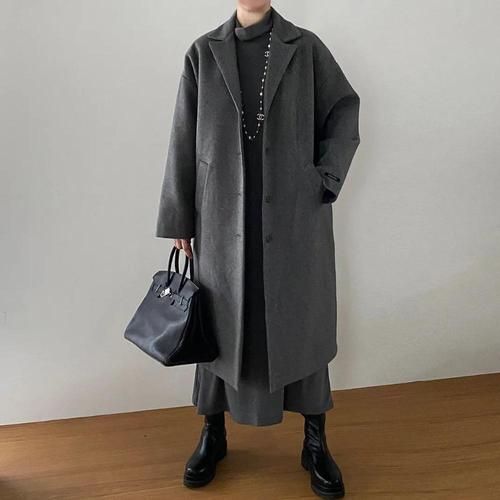여자 겨울야상 맥시 싱글버튼 일자 덤블 롱코트_3