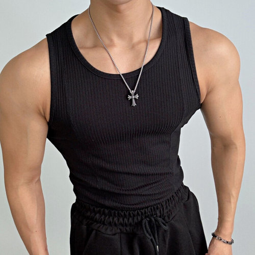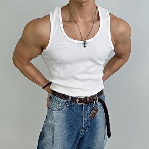 베이직바이블 남자 골지 나시 민소매 고탄력 스판 머슬핏 짐웨어 탄탄한 티셔츠