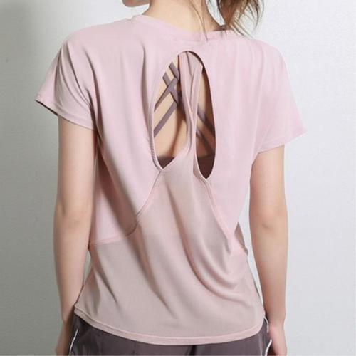 여성 운동복 헬스 반팔 티셔츠 백 오픈 메쉬 반소매