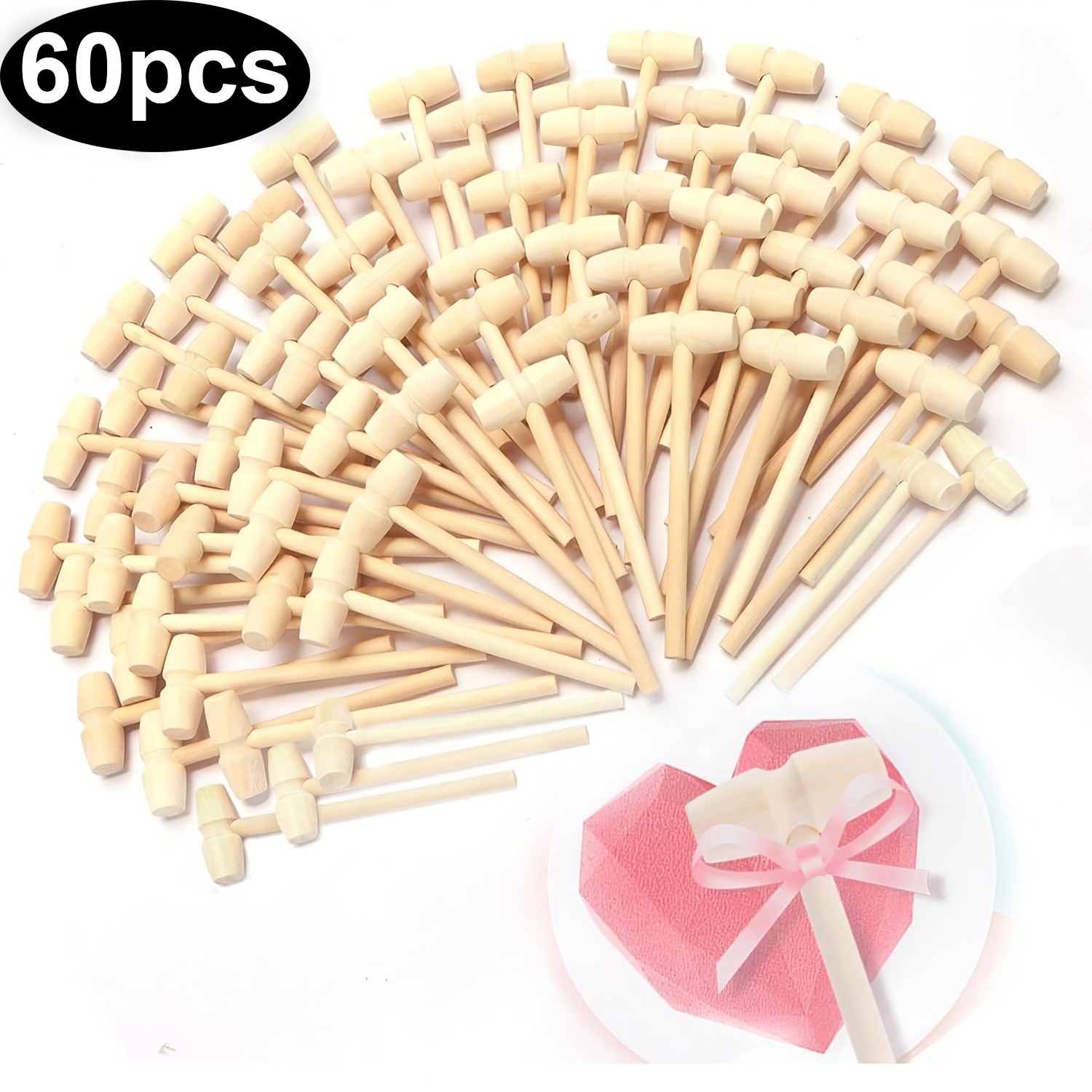 TEMU 15개/30개/45개/60개 미니 나무 망치 초콜릿용, 작은 나무 망치 깨지는 초콜릿 하트 몰드, 초콜릿 깨지는 곰 몰드용 나무 망치, 초콜릿 공예 및 파티용 나무 망치