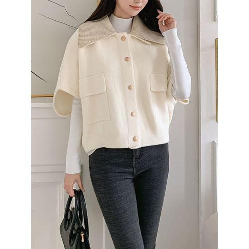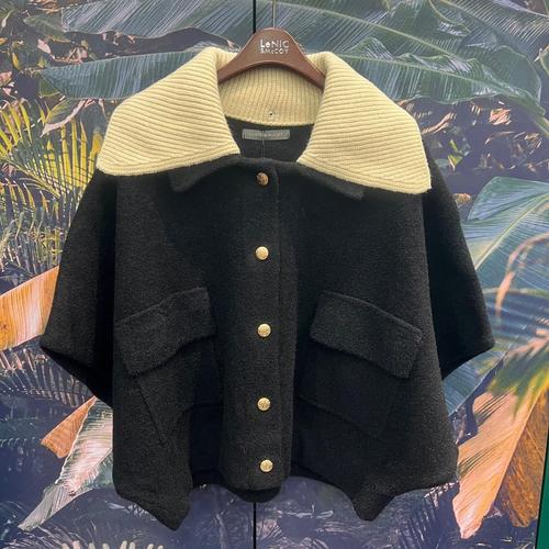 [탑온탑]배색 빅카라 케이프 자켓 크롭아우터