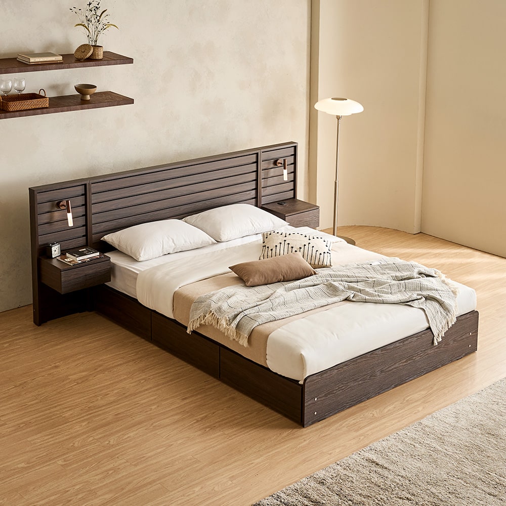 글랜 몰딩헤드 LED 호텔 침대 서랍 수납형 프레임 SS/Q