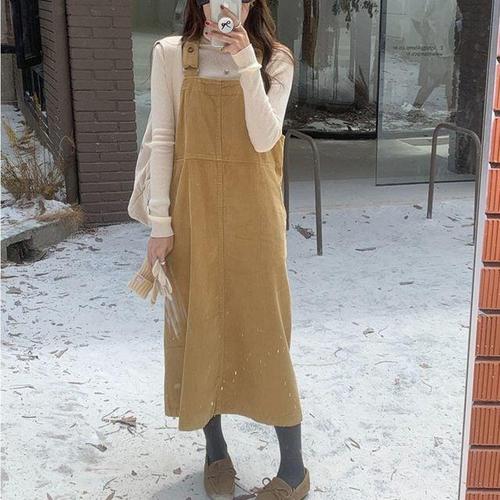 [신세계라이브쇼핑][옷자락] 여자 코듀로이 패치 빅포켓 양트임 멜빵 가을 롱원피스