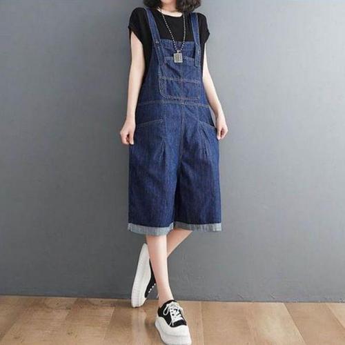 여성용 빅사이즈 루즈핏 주머니 점프수트 캐주얼 워싱 청바지 데님 멜빵바지