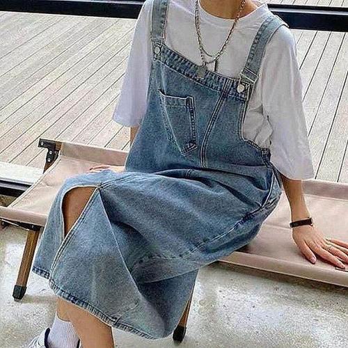 데님 치마 복 여성복 데일리복 멜빵 여성 (3ipbS)