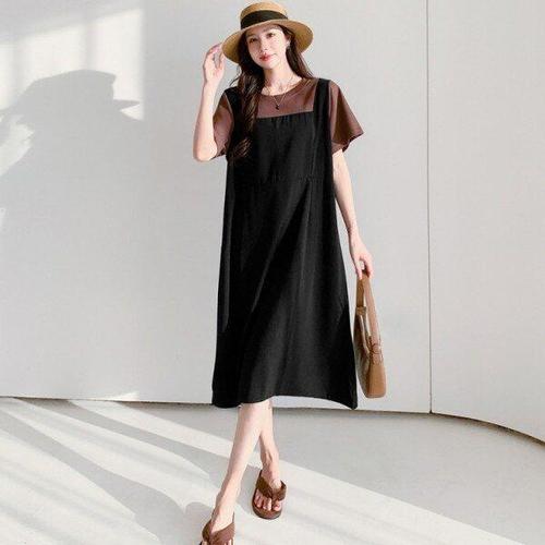 [옷자락]여성 사랑스러운 가을 멜빵 빅사이즈 라벨 롱드레스