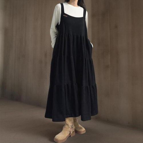 [신상오픈런]여성용 사랑스러운 가을 캉캉 롱 원피스 빅사이즈 멜빵 드레스