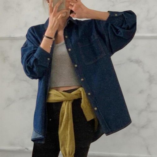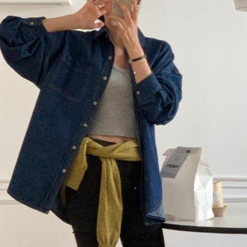 [신상오픈런]여자 키치무드 백라벨 포켓 코튼 루즈핏 청 남방