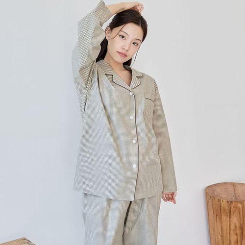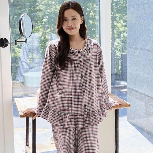 [알콩단잠]국내생산 잠옷세트 슬립웨어 체크 여성 파자마 선염면 홈웨어