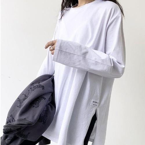 [모노무드]LMO 와이드핏 여성용상의 옆트임 여성용 롱기장 풀슬리브 데일리룩 티탑 2색