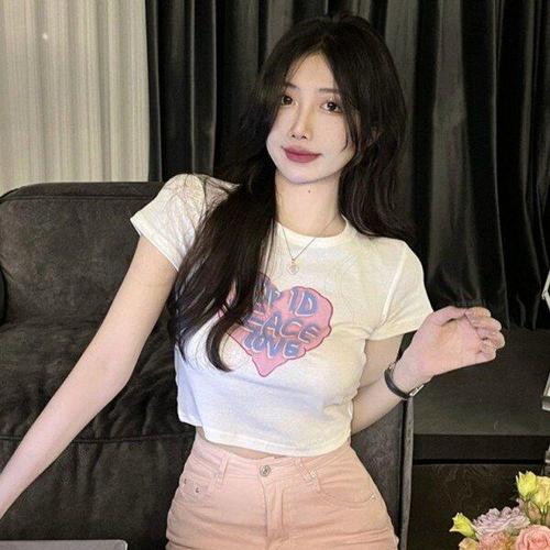 [모노무드]LMO 하트 여성용 숏탑 하프티 레터링 여성용하절기 숏티 데일리 탑