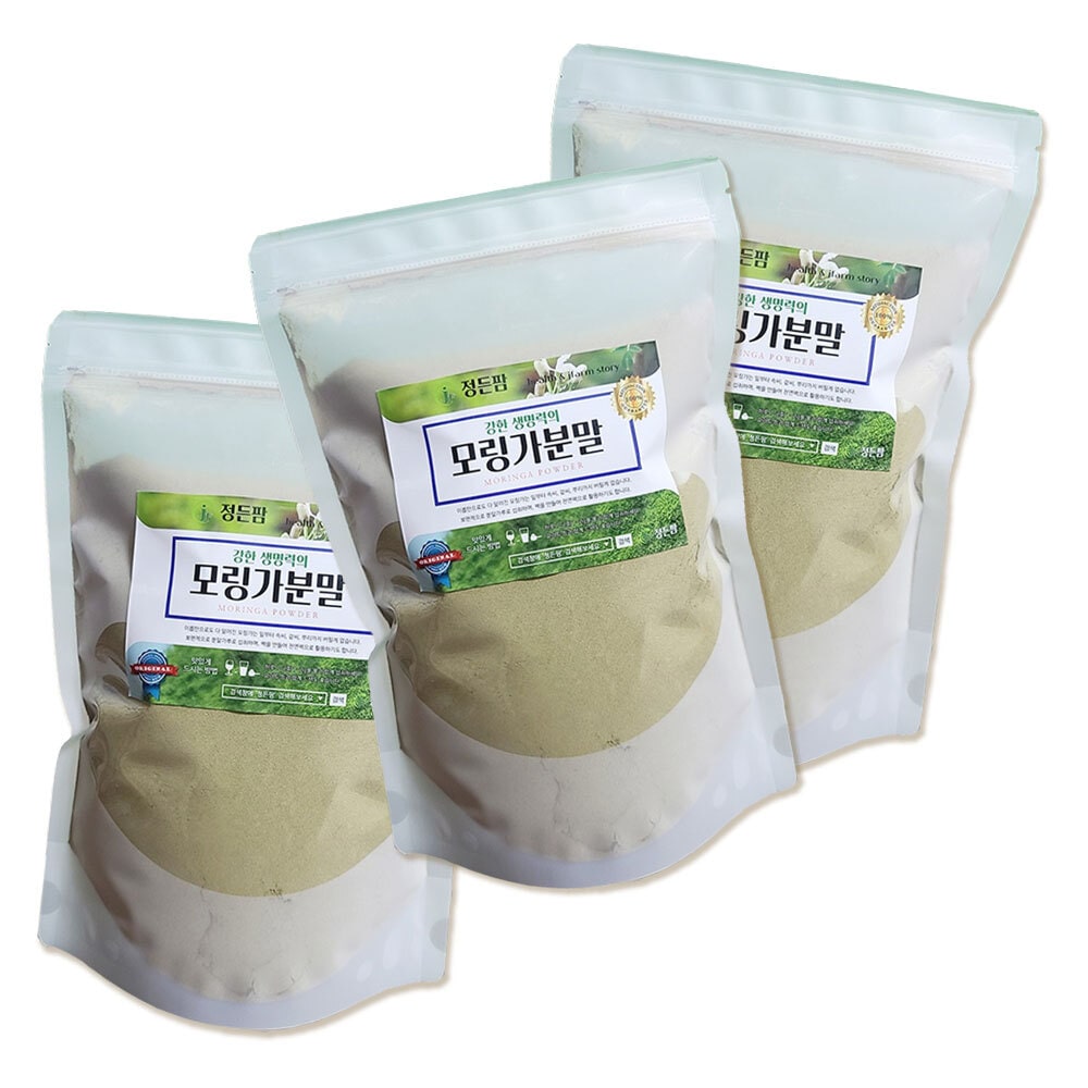 푸른들판 국내산 모링가 잎 분말 110gx3통 가루 100% 파우더