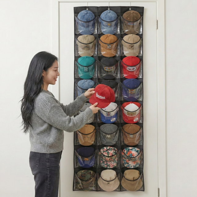 디오셀 24칸 걸이형 포켓 모자 정리함