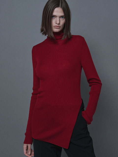[마레디마리] [Italy Cashmere] Turtleneck Slit Knit Top - Red