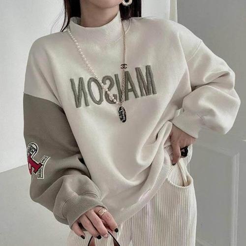 [드레스허그]알파벳 패치 반폴라 맨투맨 탑