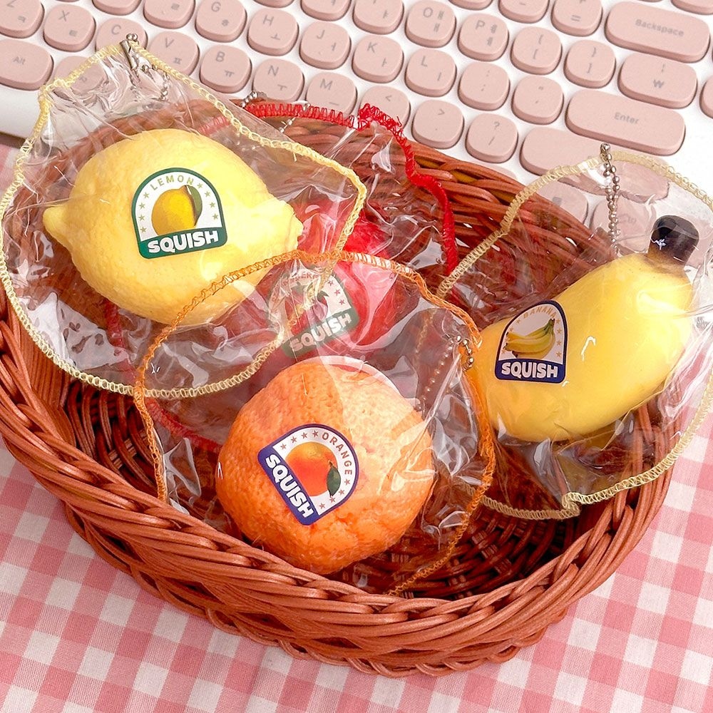 과일 스퀴시 말랑이 포켓형 쫀득 키링 피젯토이 레몬 바나나 딸기 오렌지 심신안정 스트레스볼