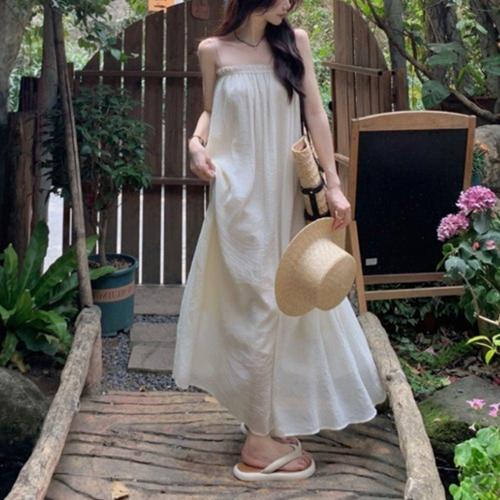 여성 크림색 끈 롱원피스 해외여행 소풍 휴가 동남아 WF38D94