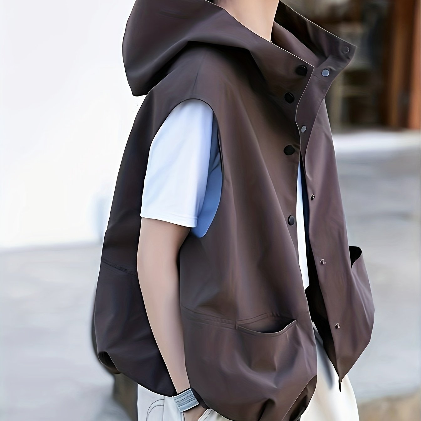 TEMU 여성 후드 민소매 조끼 - 가벼운 버튼 앞면 클로저, 봄/가을용 루즈핏 레이어링, 오피스, 파티, - 간편한 관리의 시크한 브라운/블랙/그레이/블루 외장 - 여성 패션 외장, 파티 복장|여성의류|민소매|패션