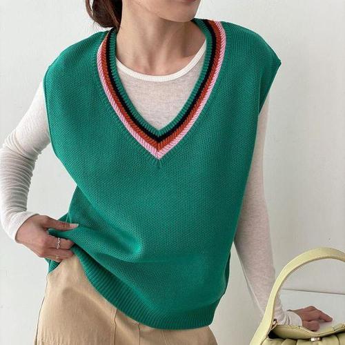 [신상오픈런]여자 무지개 브이넥 가을 데일리룩 베이직핏 니트조끼