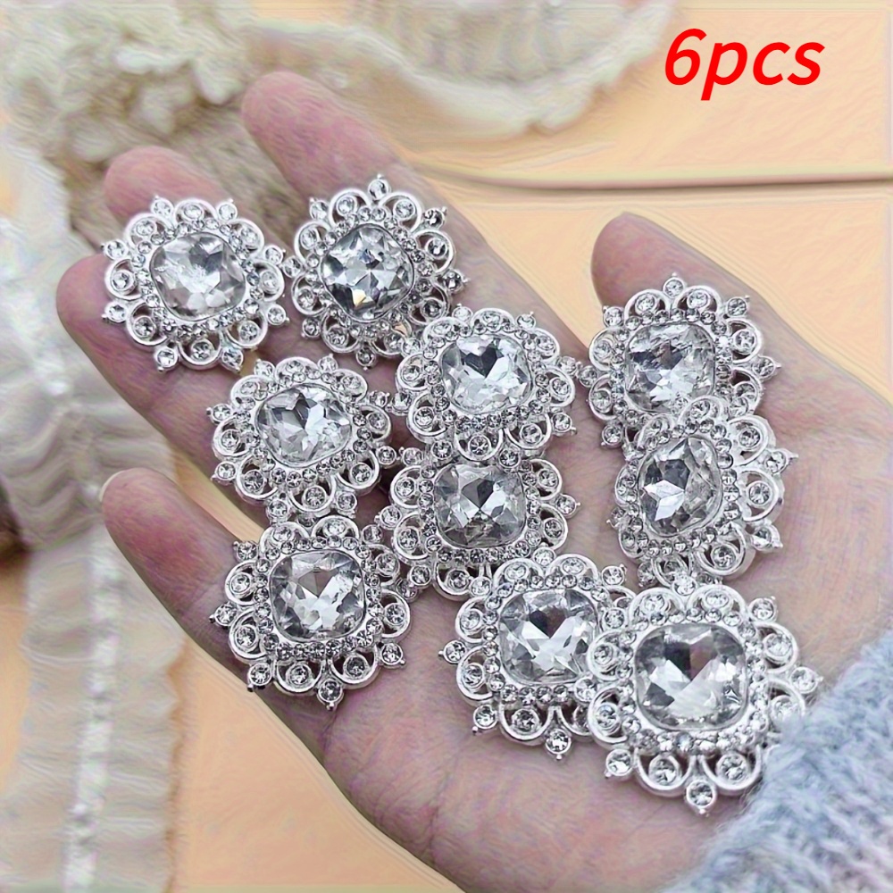 TEMU 드레스, 코트, 스웨터용 빈티지 화이트 메탈 장식 라인스톤 카디건 버튼 6개 세트 - 반짝이는 신발 및 모자 DIY 공예 액세서리, 한국 스타일 의류 장식용 옷 단추
