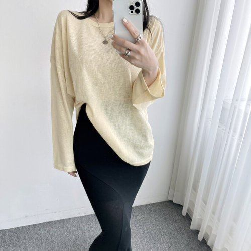 글램핏 / 시스루 루즈 오버 핏 무지 얇은 긴팔 롱 티셔츠 6컬러
