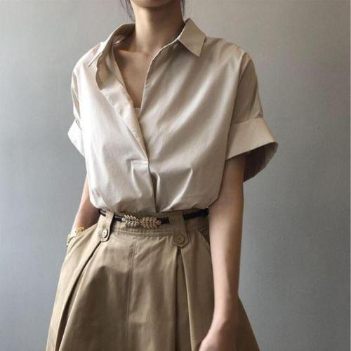 [에이치플러스몰]오픈 카라 루즈핏 베이직 무지 5부반팔 셔츠 블라우스