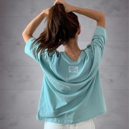 [옷자락]여성 백패치 면 무지컬러 루즈핏 7부 티셔츠