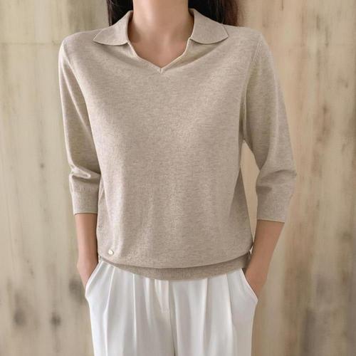 Destijl HC06 찰랑찰랑하고 매끄러운 소피 무지 브이넥 7부소매 깔끔한 니트티 D2531sw03R