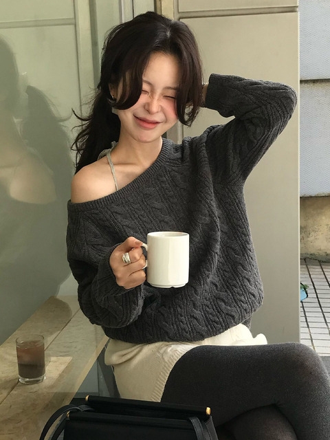 [문에이블]문에이블 여자 여성 루즈핏 보트넥 니트 플리츠 밴딩 팬츠 편한 데일리룩 투피스 세트