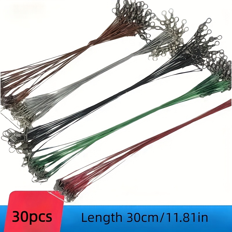 TEMU 스위블 및 스냅이 포함된 30개 헤비 듀티 스틸 낚시 리더 - 125LB 고강도 해수어 리드, 혼합 색상, 안정적인 야외 낚시에 적합한 내구성 있는 PC 소재