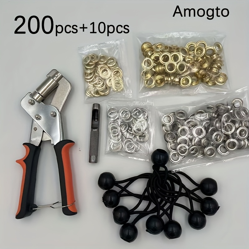 TEMU AMOGTO 200개 그로멧 키트 + 무료 번지 코드 10개 포함! 골든 아이렛 100개 & 실버 아이렛 100개, 캔버스, 가죽, DIY 공예용 핸드헬드 펀치 도구