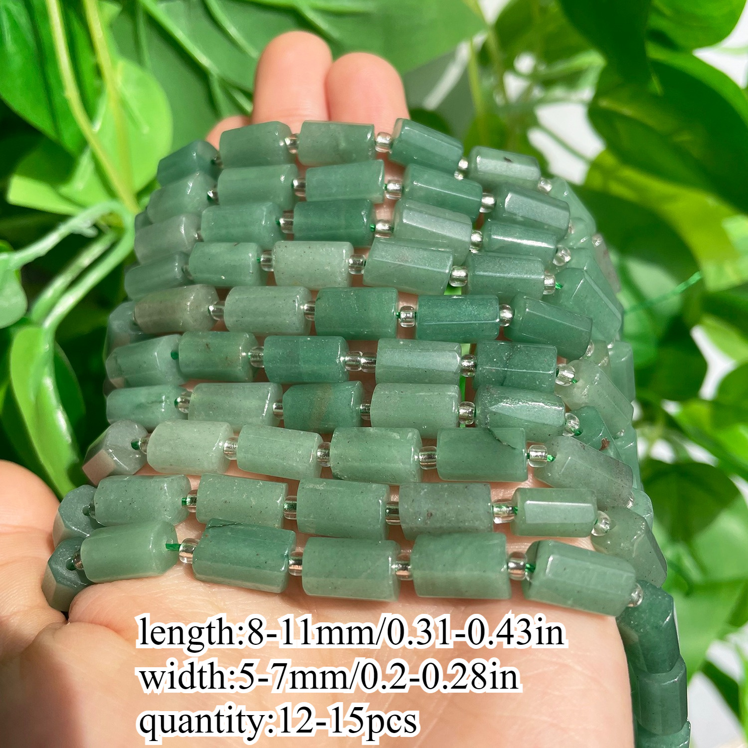 TEMU 타난타 AAA 천연 그린 아벤츄린 스톤 비즈 - 잔디 모양 내포물이 있는 면처리 원통형 구슬, 8-11mm - DIY 주얼리 만들기, 팔찌, 목걸이, 펜던트용 - 일상 및 공식 행사에 어울리는 우아한 그린 비즈, 핸드메이드 팔찌, 패션 디자이너용