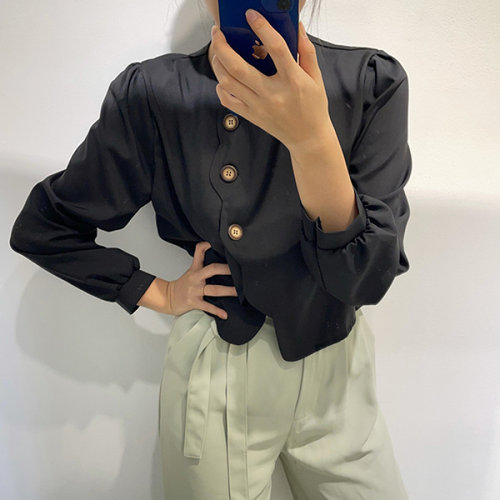 슈팅스타 / 라운드넥 물결 쓰리버튼 크롭 블라우스 자켓