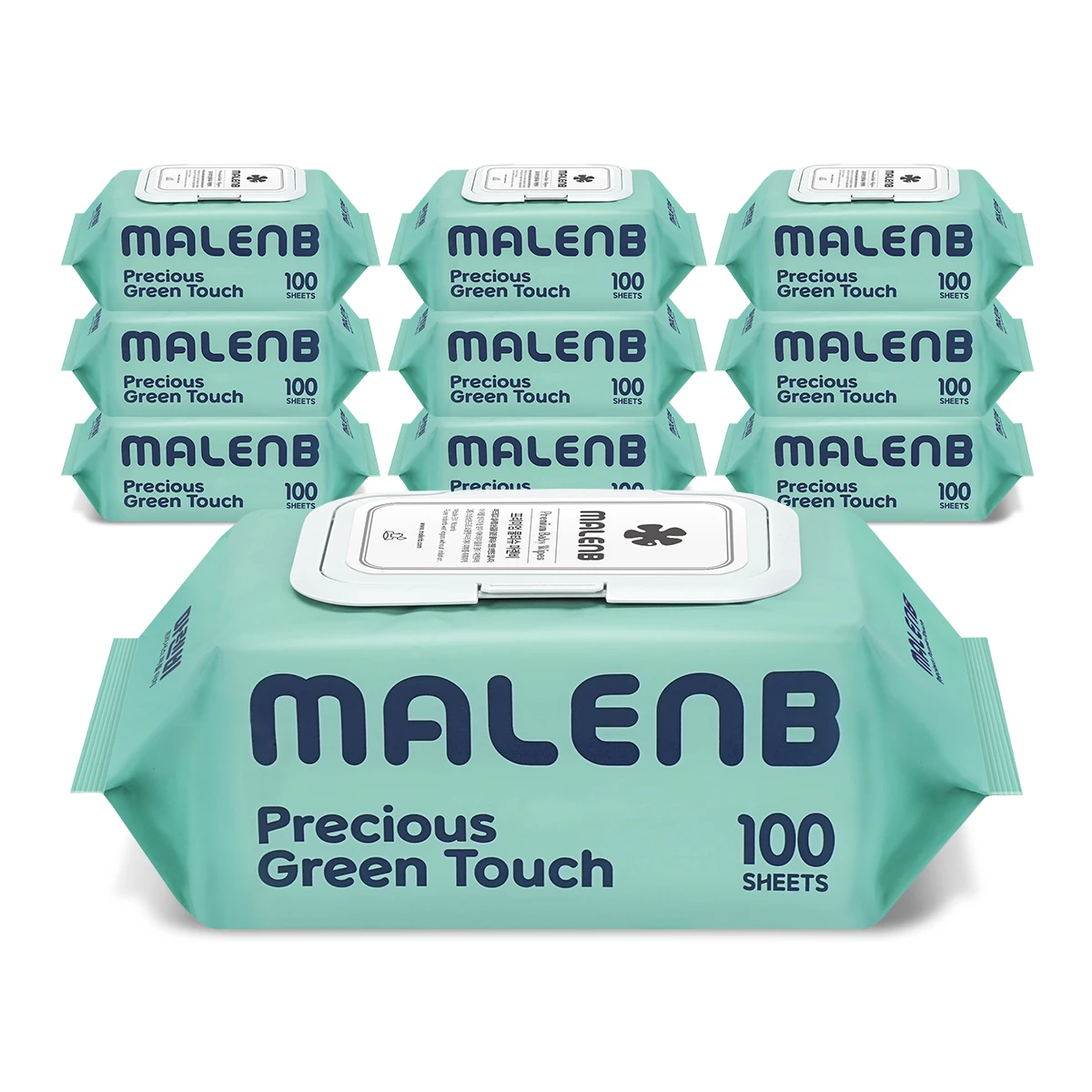 (마렌비)그린터치 물티슈 100매 10팩 고평량 엠보싱 캡 아기물티슈