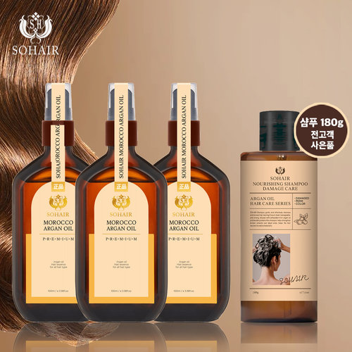 [홈앤초특가] 쏘헤어 모로코 아르간오일 프리미엄 헤어에센스 3병 특가패키지(+너리싱샴푸)