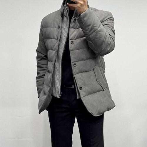 [바쏘옴므]자켓 구스다운 니트배색 스웨이드 점퍼 차콜 Z4UA12-2