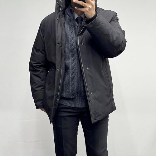 [바쏘옴므]남성 구스다운 하프기장 블랙 패딩점퍼 WSZ4-UA51-ABK