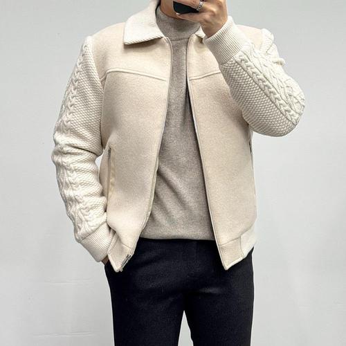 [바쏘옴므]자켓 구스다운 니트배색 스웨이드 점퍼 베이지 Z4UA11-2