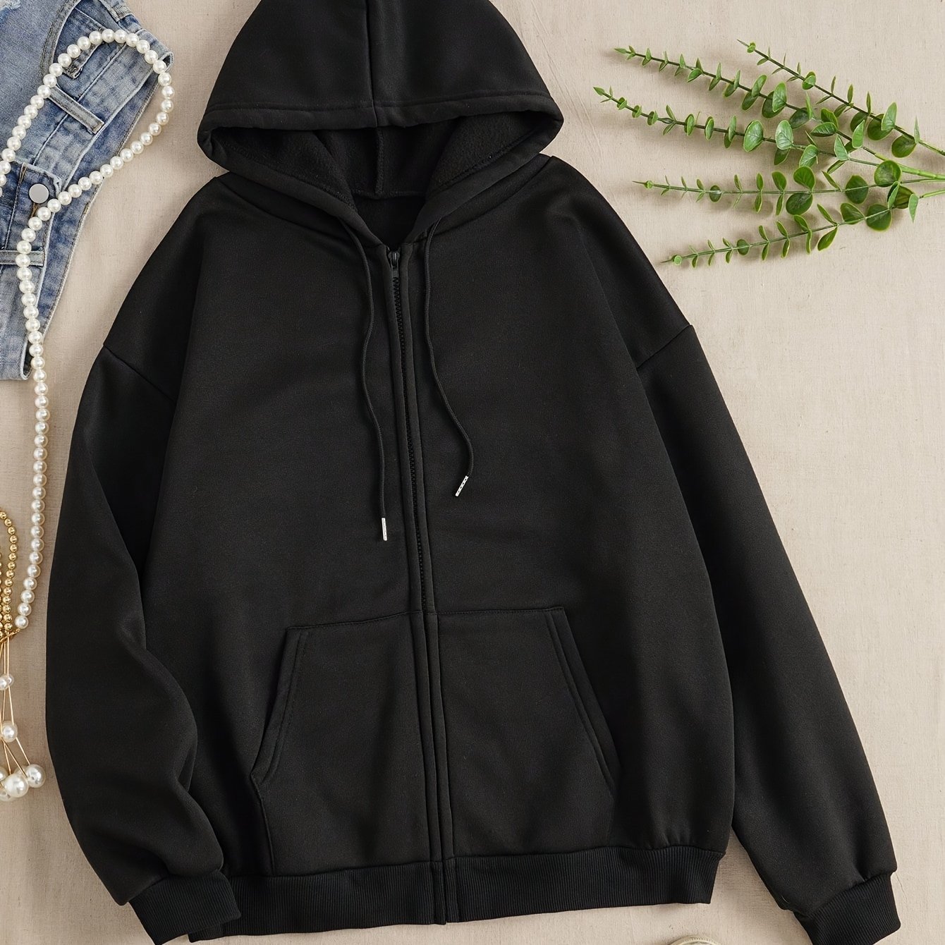 TEMU 여성용 긴팔 후드티, 봄/가을용 기모 안감, 레터 프린트, 지퍼 및 드로스트링 후드 특징.