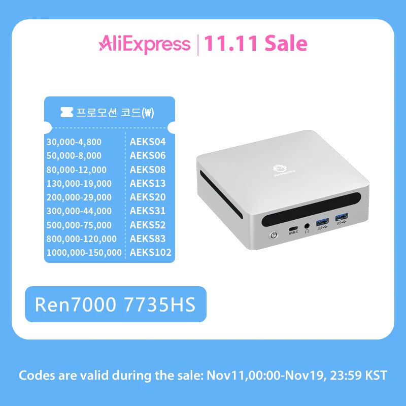 Genmachine AMD Ryzen 7 7735HS 미니 PC 8 코어 16 스레드 3.2GHz TDP 35-54W Windows 11 LPDDR5 32G 6400Mhz WIFI6 BT5.2 pc 게임