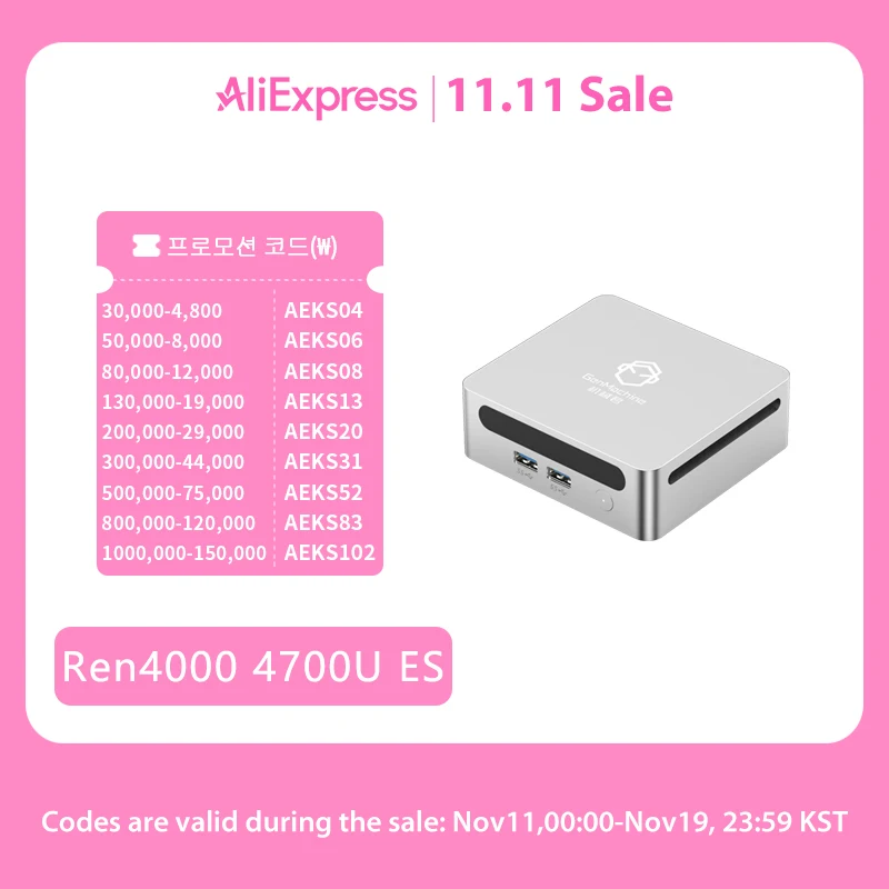 GenMachine 미니 PC 4700U ES AMD 4700U ES CPU 2.0GHz 최대 3.8GHz Windows 11 Ryzen DDR4 64GB WiFi6 게임용 PC Diy 게임용 컴퓨터