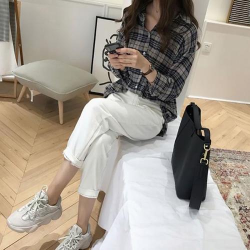 [미라클세븐][M7] 여성 미니멀리즘 격자 공대생 클래식 셔츠