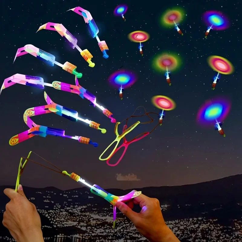 5/10개 LED 플라잉 애로우 로켓 장난감 - 고무줄 발사 헬리콥터 라이트 파티 재미 최고의 어린이 선물 야외 놀이