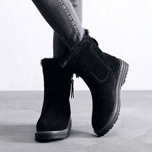 [신난다슈]여성 미들부츠 5cm 키높이 털 방한 미디 부츠 퍼 통굽 스웨이드 LD256376 블랙