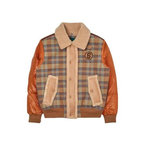 [세인트나인]남성 울 변형 체크 미들다운 점퍼 BEIGE