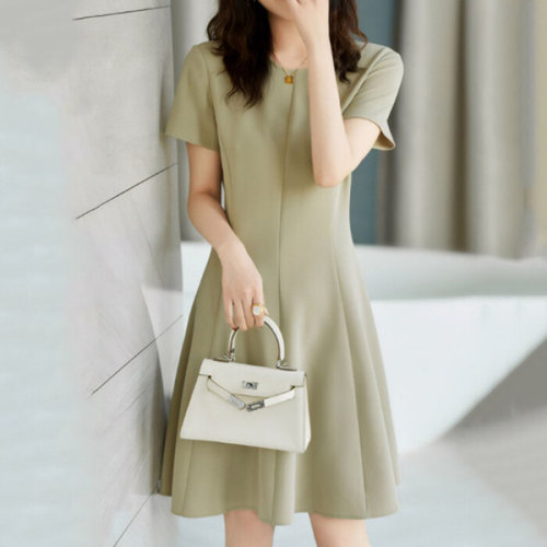 [포커스] FF3I7OP01295_카라넥 A라인 미디엄 원피스