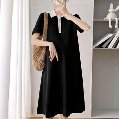 [셀러허브_여성트랜드패션]ONM 배색카라 원피스 미디움 임산부 베이직 반팔 일상복